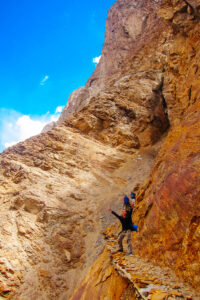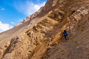 The trek quickly revealed itself to be one of the most beautiful and challenging journeys I’ve ever undertaken. The trail winds through dramatic landscapes, from rocky cliffs to verdant valleys. One of my favorite stretches was a narrow path hugging a sheer rock face—it felt like walking on the edge of the world.