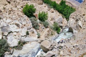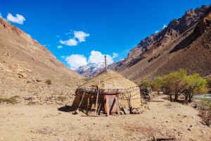Facing the Wakhan Corridor, the small settlement of Darshai (sometimes spelled Darshay) sits on the river that separates Afghanistan from Tajikistan. This charming village serves as the starting point for a trek to a yurt camp located about 20 kilometers away, deep in the valley’s heart.