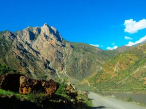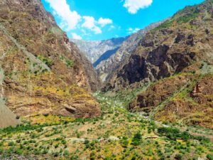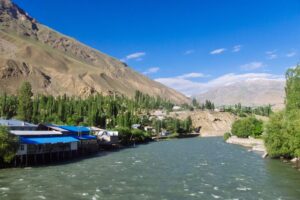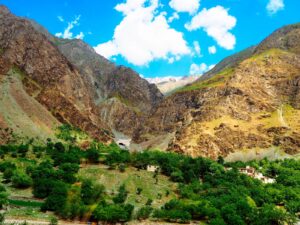 We hired a private car in Dushanbe for the trip, knowing it would be a long and demanding journey. Setting off early in the morning, we were filled with excitement and curiosity about what lay ahead. As we left the city, the road began to weave through stunning mountain landscapes, with the Afghanistan mountains on our right side, separated only by a roaring river. The sight of Afghan villages clinging to the steep slopes on the other side of the river was surreal—a glimpse of life in a land that seemed so close yet felt worlds apart.