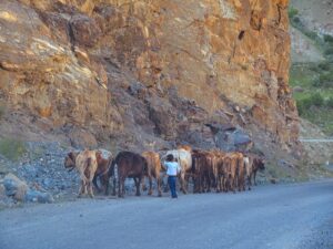 As we continued on, the narrow mountain passes and winding roads tested our patience and endurance. The stunning scenery, however, provided a welcome distraction—the dramatic cliffs, roaring rivers, and towering peaks of the Pamirs were nothing short of awe-inspiring.